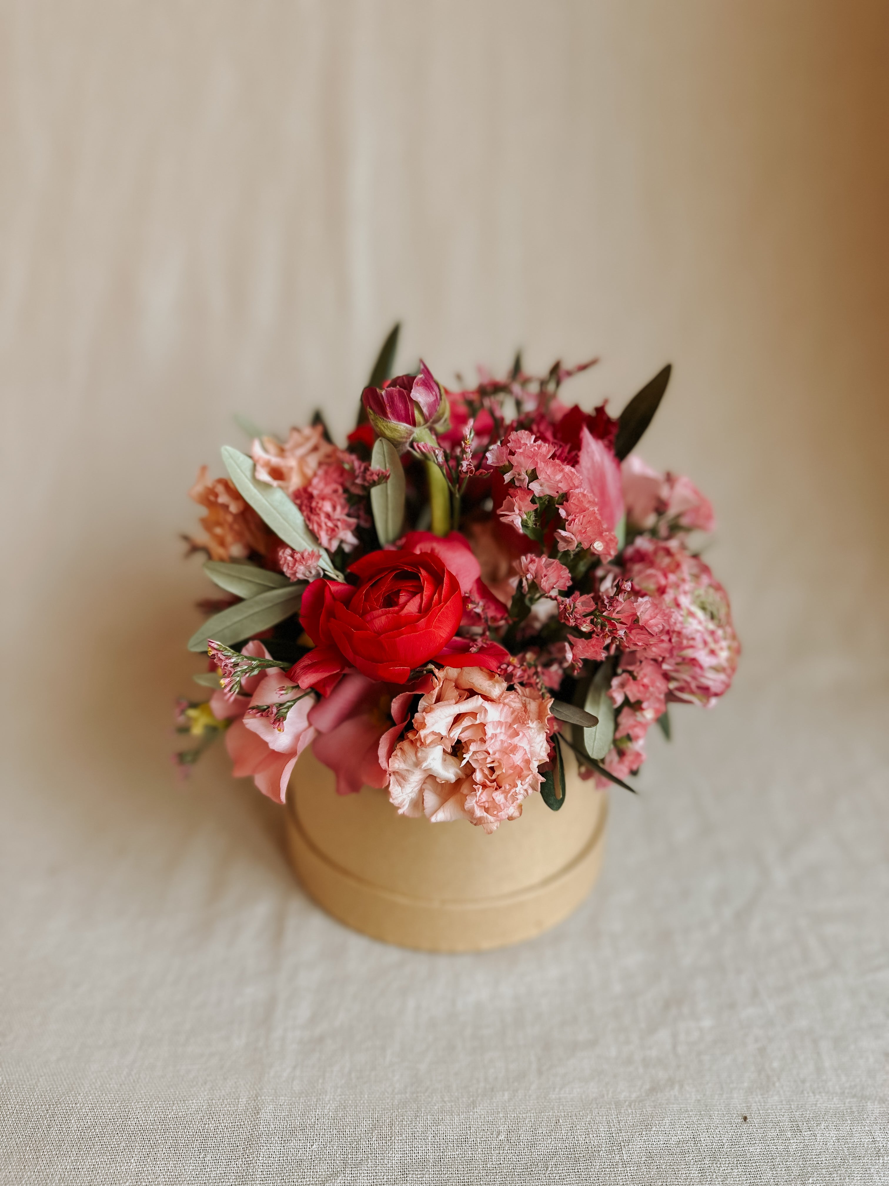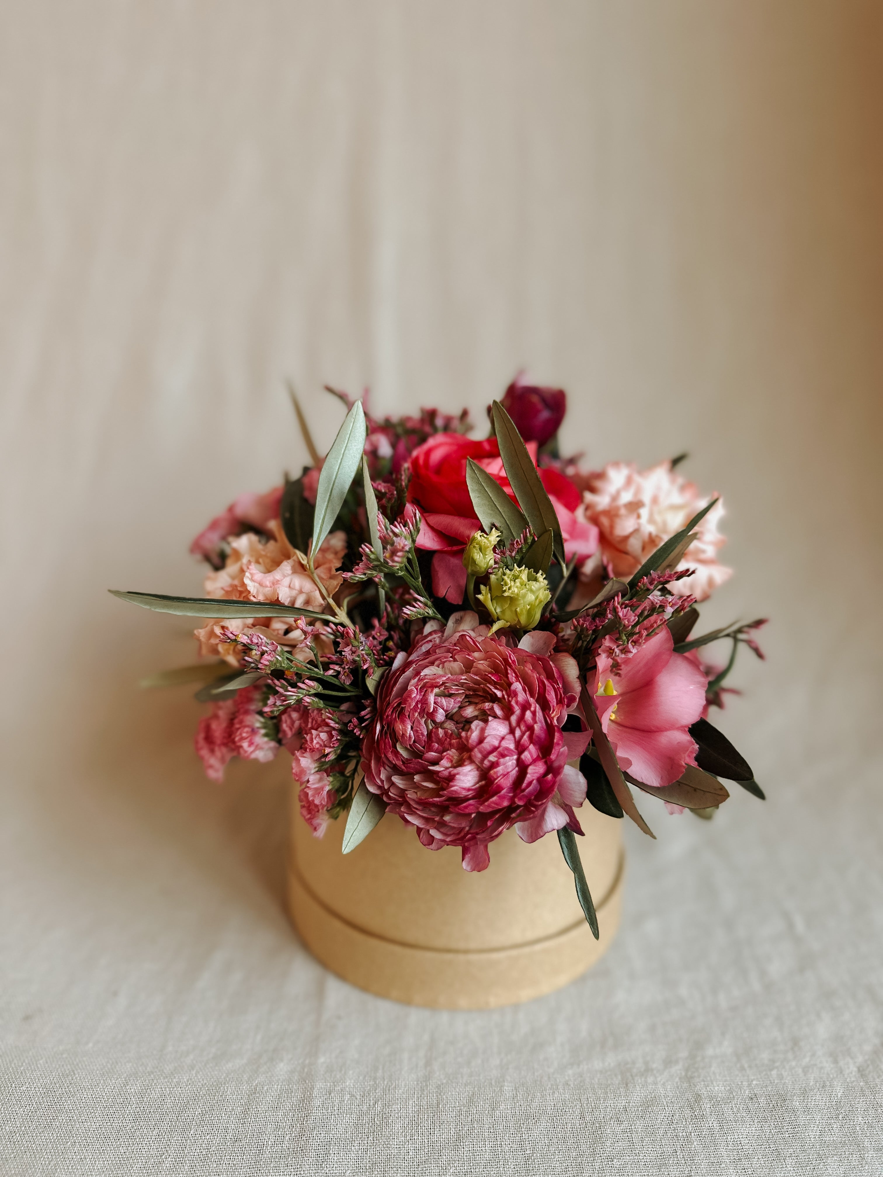 Ein Frischblumenböxli mit oder ohne Mäscheli. Egal ob in frechen frischen Pinktönen gehalten - mit Ranunkeln, Lisianthus, Statizien und Oliven. Oder zum Beispiel mit Anemonen und Co. Kräftig, lebendig und voller Ausdruck. Klingt nach viel Amore. Und fühlt sich in birenbizzeli auch so an, wenn man es daheim hinstellt.